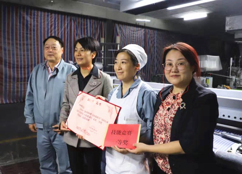 11月1日,市婦聯(lián)黨組書記、主席焦玲一行在集團黨委副書記、紀委書記、工會主席劉春西的陪同下來到華茂集團一分廠和織染公司,將“建功新時代、發(fā)展我助力”一等獎獎狀送進車間,送到獲獎?wù)叩氖种小?/p>